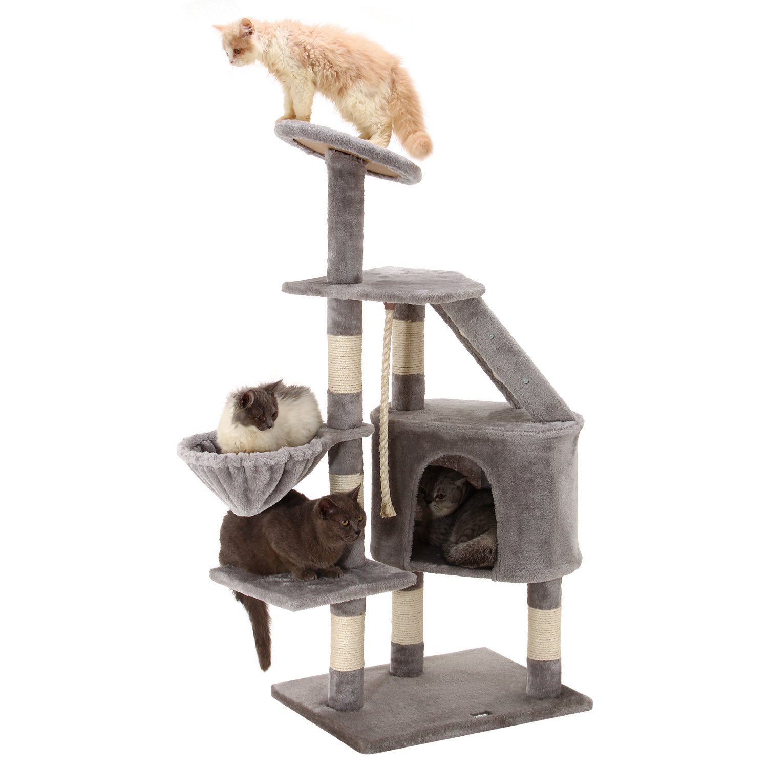 Monitasoinen kissapuuhuoneisto isoille kissoille Cat Tower, jossa on raapimislaudalla pehmustettu pehmoahven ja mukava kori