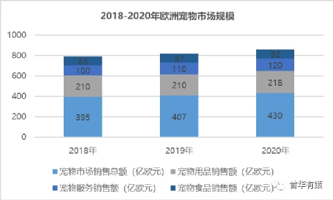 នាពេលបច្ចុប្បន្ននេះ ទីផ្សារសត្វចិញ្ចឹមនៅអ៊ឺរ៉ុបបង្ហាញពីនិន្នាការកើនឡើងជាលំដាប់ ហើយការលក់ផលិតផលសត្វចិញ្ចឹមកំពុងកើនឡើងពីមួយឆ្នាំទៅមួយឆ្នាំ។យោងតាមសហព័ន្ធឧស្សាហកម្មចំណីសត្វអឺរ៉ុប (FEDIAF) ការប្រើប្រាស់សត្វចិញ្ចឹមសរុបនៅអឺរ៉ុបក្នុងឆ្នាំ 2020 បានកើនឡើងដល់ 43 ពាន់លានអឺរ៉ូ កើនឡើង 5.65% បើធៀបនឹងឆ្នាំ 2019 ។ក្នុងចំណោមនោះ បរិមាណលក់អាហារសត្វចិញ្ចឹម ការផ្គត់ផ្គង់សត្វចិញ្ចឹម និងសេវាកម្មសត្វចិញ្ចឹមបានឈានដល់ 21.8 ពាន់លានអឺរ៉ូ 9.2 ពាន់លានអឺរ៉ូ និង 12 ពាន់លានអឺរ៉ូក្នុងឆ្នាំ 2020 ជាមួយនឹងការកើនឡើងប្រចាំឆ្នាំបើធៀបនឹងឆ្នាំ 2019។