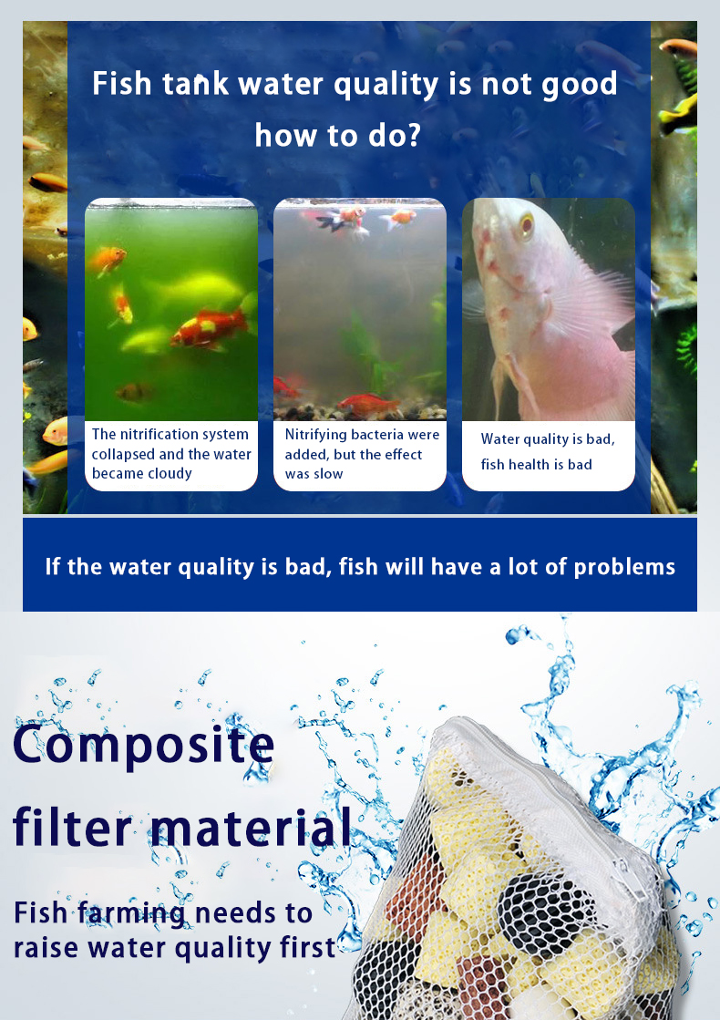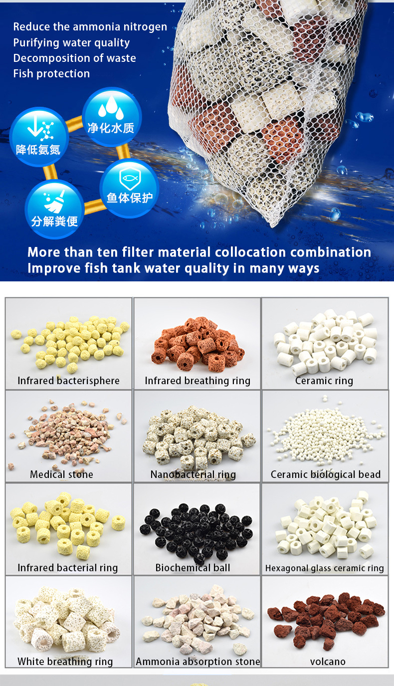 1. Tangi la samaki la maji safi: yanafaa kwa kila aina ya matangi ya samaki ya maji safi, yanatoa uchujaji wa hali ya juu wa kibayolojia na athari ya utakaso.